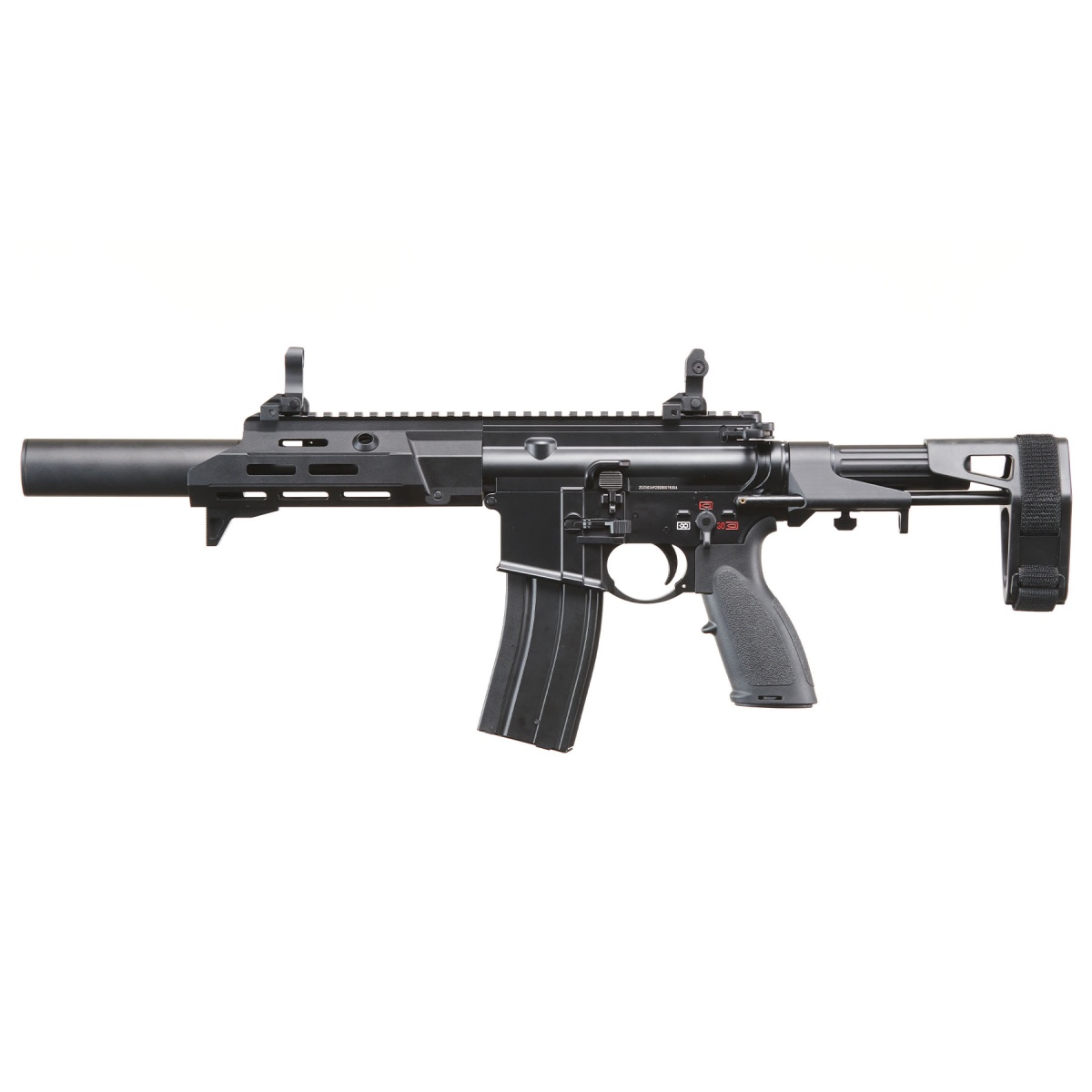 The Golden Eagle GBBR Airsoft Rifle w/ 7.5 Inch M LOK Handguard and Mock Suppressor is a compact, high performance gas blowback rifle designed for players who want realism, versatility, and modern styling on the field. Built with a durable black finish and enhanced with a short 7.5 inch M LOK piston driven style handguard, this rifle is perfect for CQB environments where agility and speed are key. The included mock suppressor adds a tactical aesthetic while also extending the rifle's profile for a balanced appearance. Outfitted with ambidextrous controls such as the fire selector, magazine release, and bolt catch, the rifle is user friendly for both left and right handed shooters. Flip up sights, adjustable for windage and elevation, provide reliable target acquisition, while the 4 position PDW stock with brace strap allows for quick adjustments and compact handling in tight spaces. Every element of this rifle is engineered to give players an advantage in competitive airsoft matches. The ergonomic pistol grip ensures comfort during extended use, while the enlarged trigger guard makes it glove friendly for year round play. An enhanced charging handle allows for smooth cycling and quick manipulations under pressure, and the 14mm CCW threaded barrel provides compatibility with muzzle devices and tracer units for customization. Combining realistic blowback action, modern ambidextrous controls, and a professional tactical design, this rifle is built to deliver both performance and immersion on the field. Available now, the Golden Eagle GBBR Airsoft Rifle with 7.5 Inch M LOK Handguard and Mock Suppressor is the perfect upgrade for players who demand reliability, accuracy, and cutting edge style from their airsoft guns.