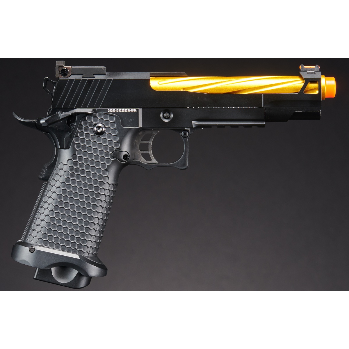Golden Eagle 3337 OTS .45 Hi-Capa Gas Blowback Pistol w/ Open Slide (Color: Black / Gold Barrel)