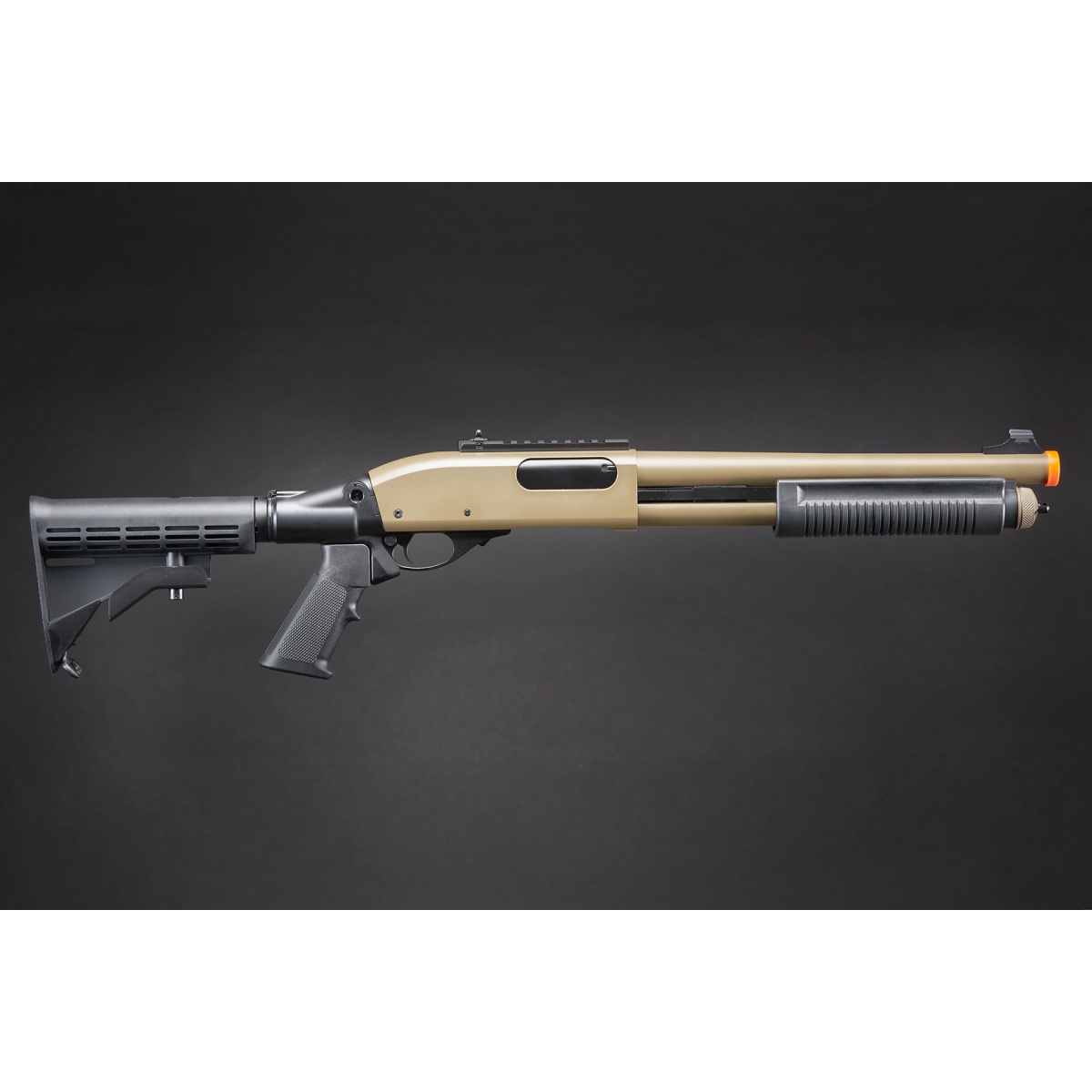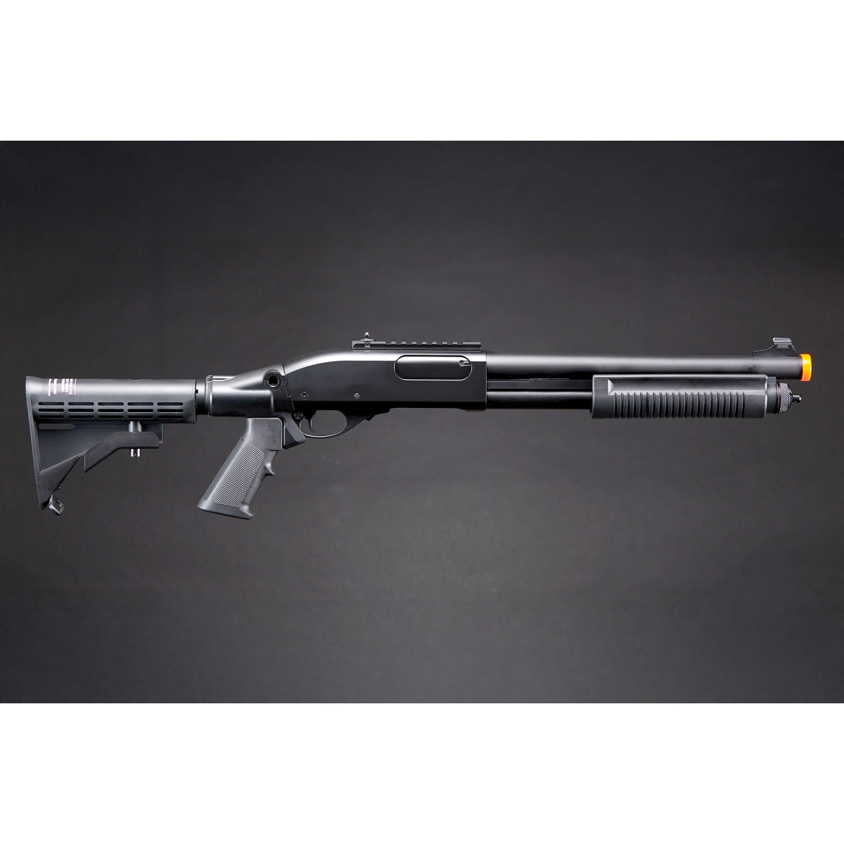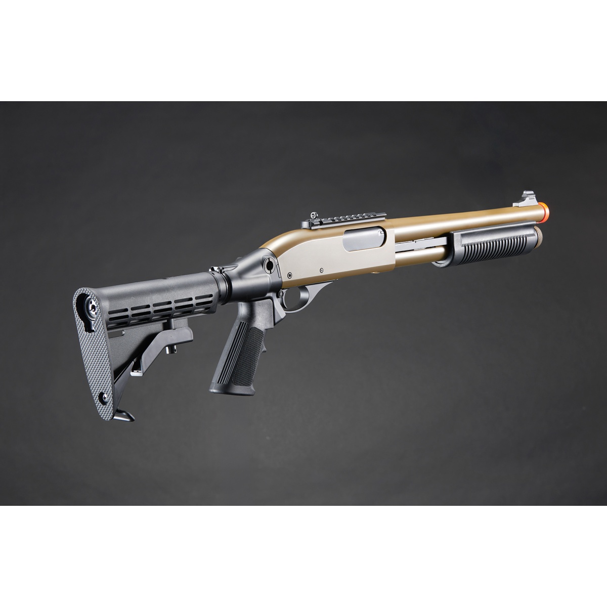 Golden Eagle M8871 3/6-Shot Pump Action CO2 Gas Airsoft Shotgun w/ Ghost Ring Iron Sights & M4 Crane Stock