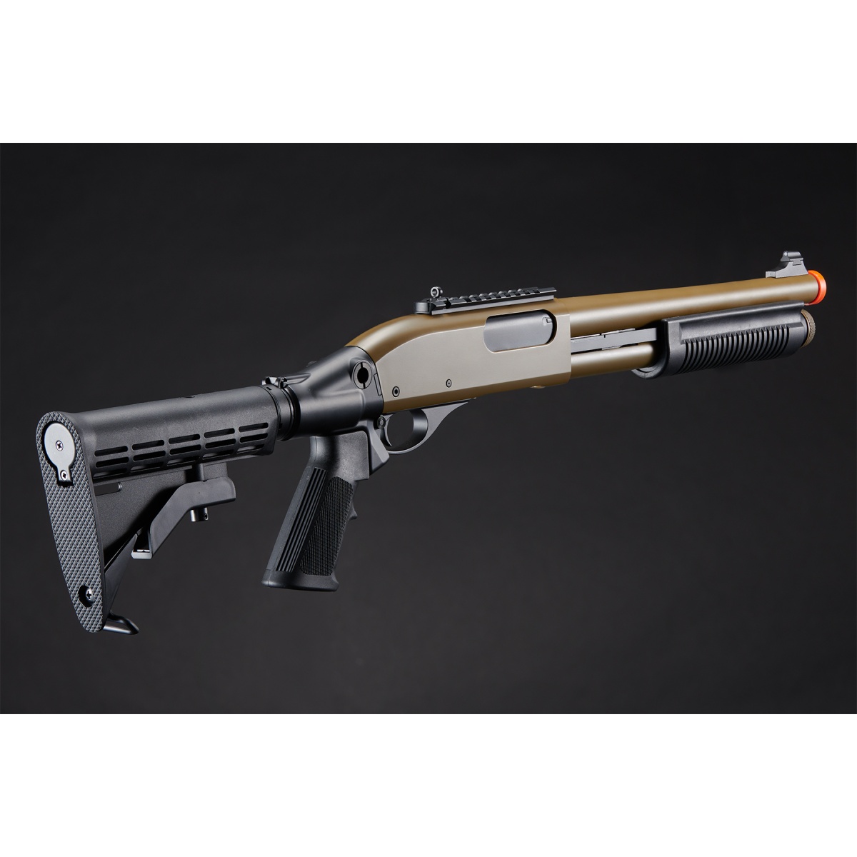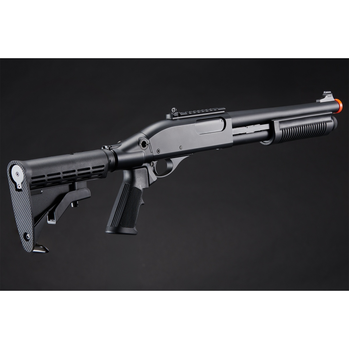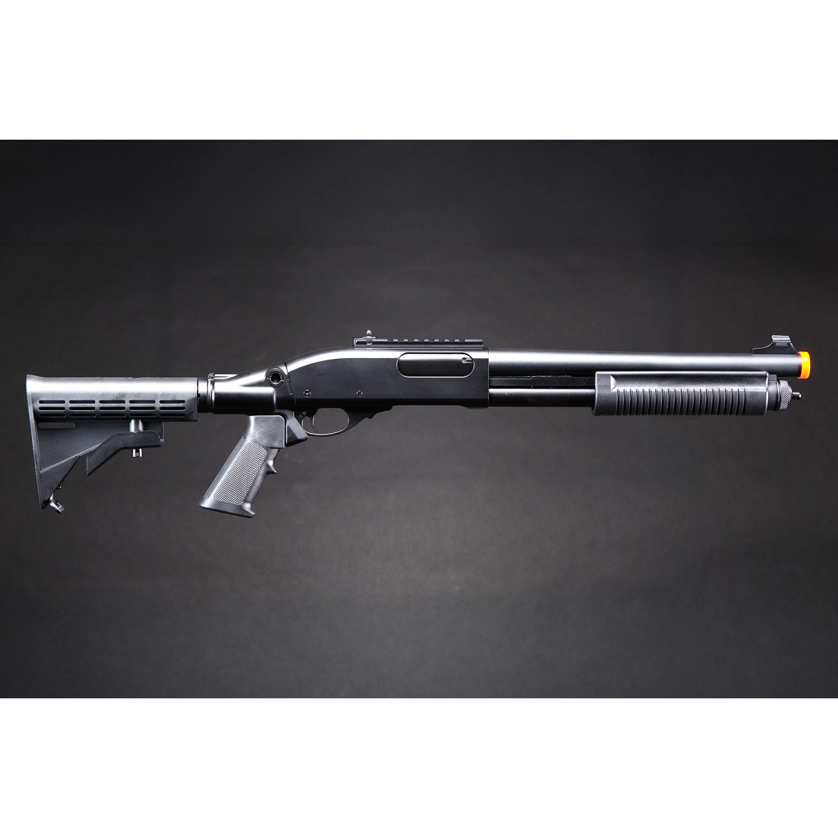 • A gas shotgun that reproduces the Remington Arms M870 Tactical Series, which has stable performance and a wide variety of variations.