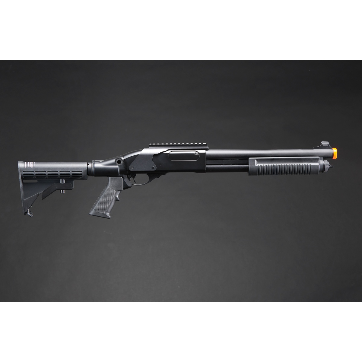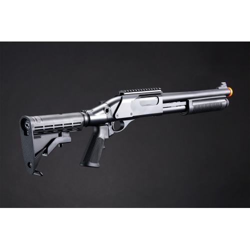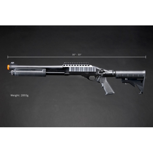 Golden Eagle M8873 3/6-Shot Pump Action CO2 Airsoft Shotgun w/ Optic Rail & M4 Crane Stock