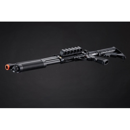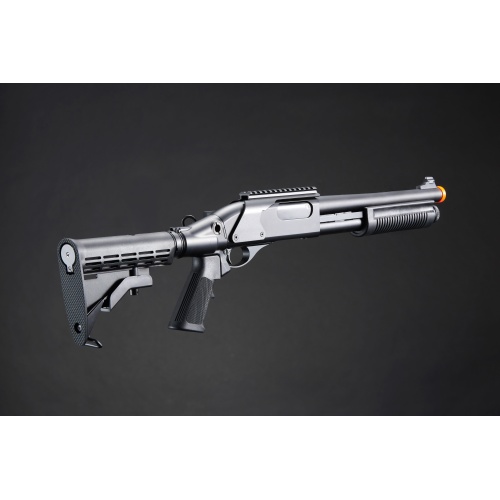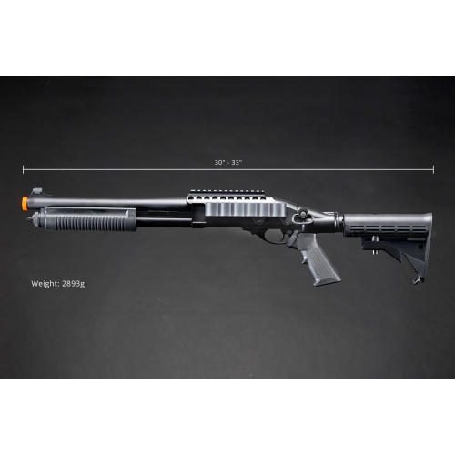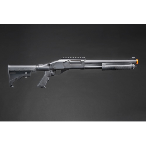 Golden Eagle M8873 3/6-Shot Pump Action Gas Airsoft Shotgun w/ Optic Rail & M4 Crane Stock - BLACK
