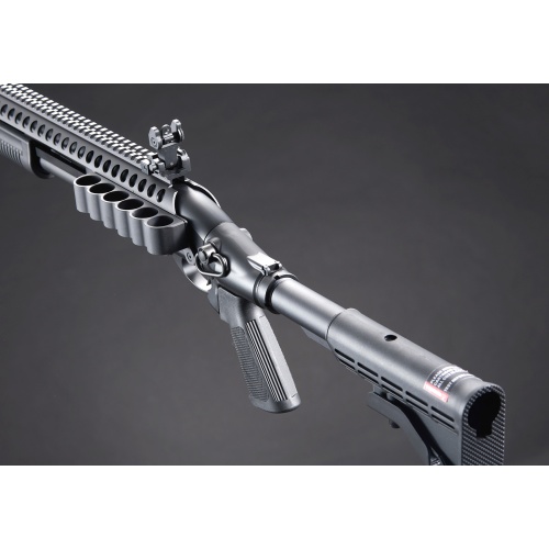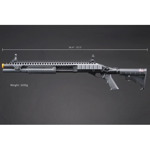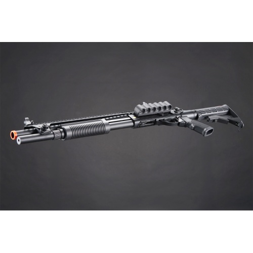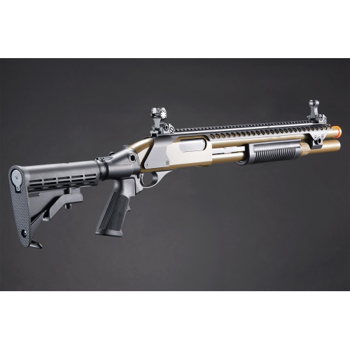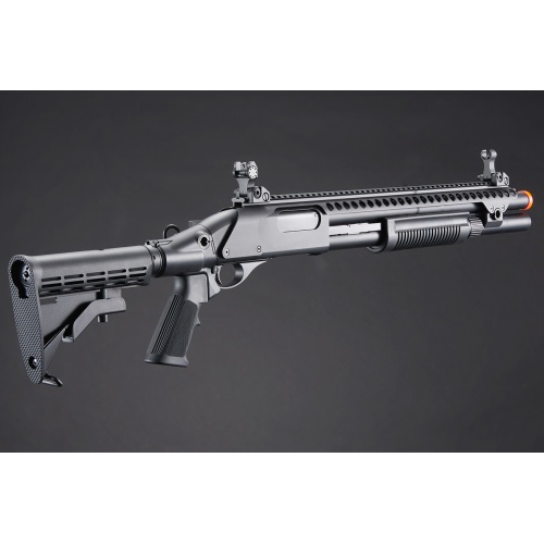 Golden Eagle M8874 3/6-Shot Pump Action CO2 Airsoft Shotgun w/ Flip Up Sights, Picatinny Rail & M4 Crane Stock