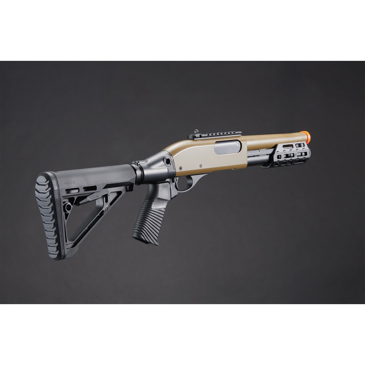 Golden Eagle M8878 3/6-Shot Pump Action Gas Airsoft Sawed-Off Shotgun w/ M-LOK Forend & Delta Stock - TAN