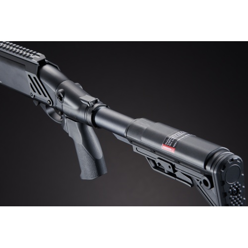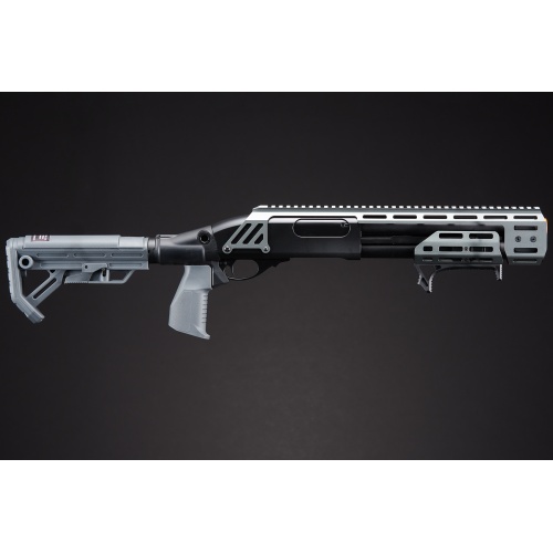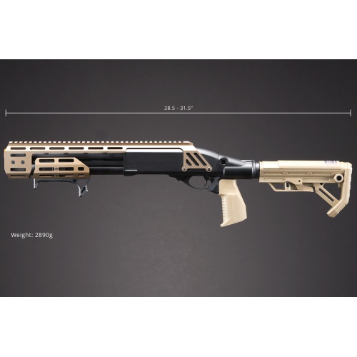The Golden Eagle Alpha Tactical Production A.T.P. Doomsday CO2 Gas Pump-Action Shotgun is built for players who demand realism, performance, and versatility. Featuring a full metal body and machined aluminum components, this shotgun mirrors the look and feel of a real tactical platform. Its large one-piece M-LOK/20mm standard top rail and front end give you endless customization options for lights, optics, or foregrips. An integrated aluminum hand stop provides enhanced control, while the removable design adds flexibility to your loadout. The M4 stock adapter includes a 6-position telescoping tactical stock and AR-style pistol grip for comfortable handling and faster transitions during CQB engagements. The shotgun also includes QD sling swivel mounts on both sides, allowing for quick sling adjustments on the fly.