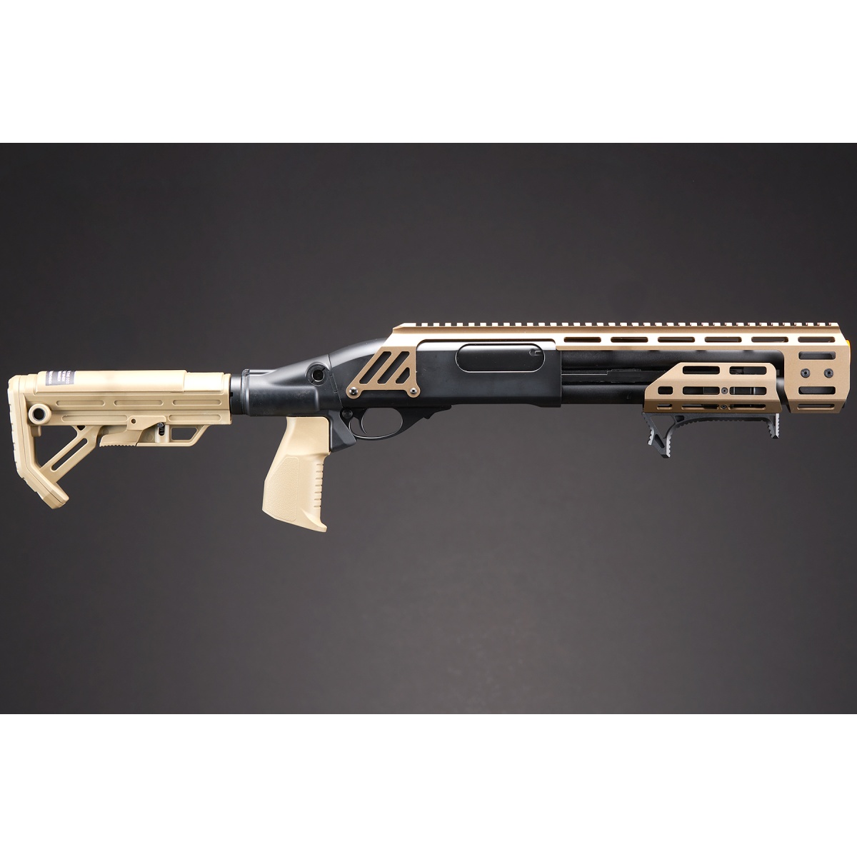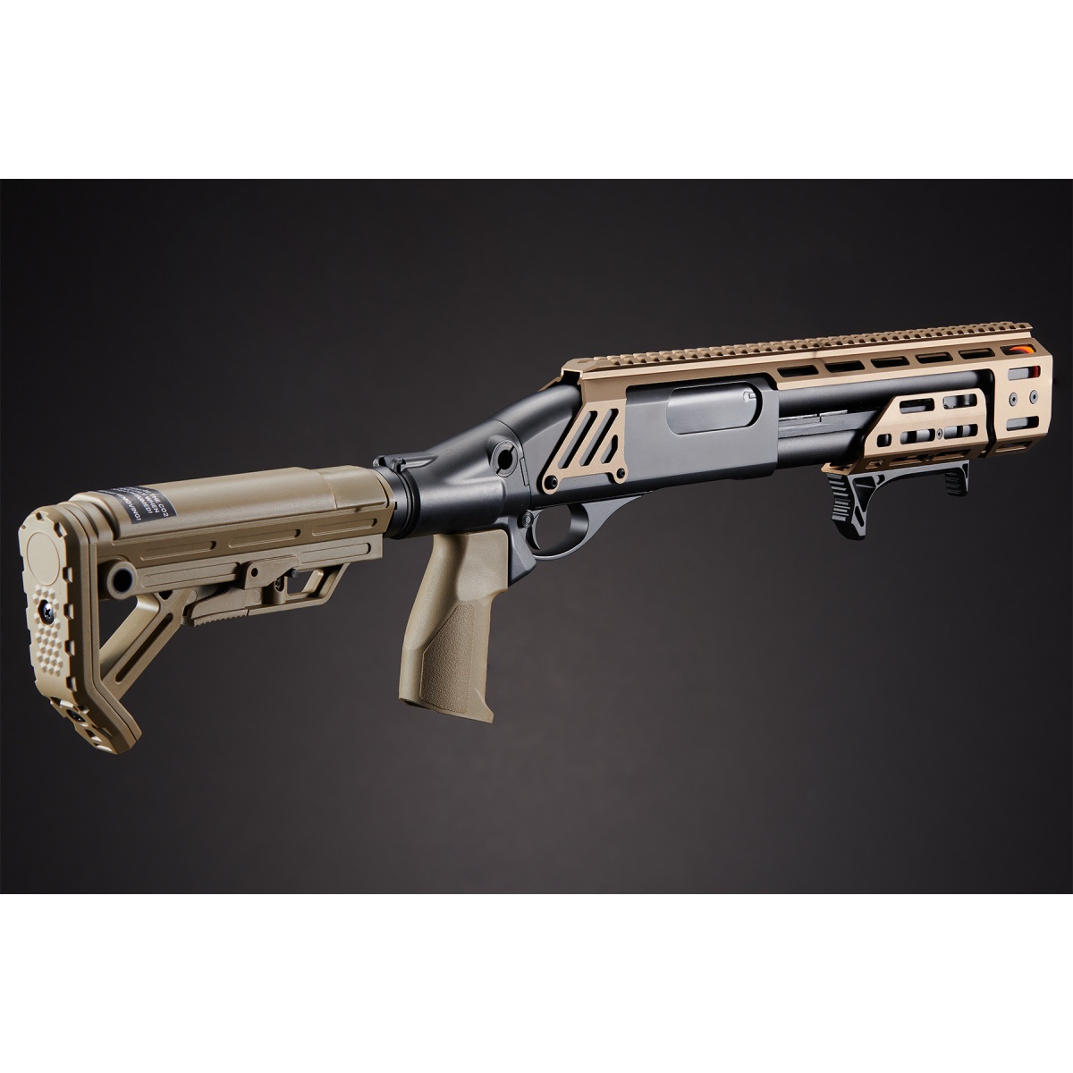 The Golden Eagle Alpha Tactical Production A.T.P. Doomsday CO2 Gas Pump-Action Shotgun is built for players who demand realism, performance, and versatility. Featuring a full metal body and machined aluminum components, this shotgun mirrors the look and feel of a real tactical platform. Its large one-piece M-LOK/20mm standard top rail and front end give you endless customization options for lights, optics, or foregrips. An integrated aluminum hand stop provides enhanced control, while the removable design adds flexibility to your loadout. The M4 stock adapter includes a 6-position telescoping tactical stock and AR-style pistol grip for comfortable handling and faster transitions during CQB engagements. The shotgun also includes QD sling swivel mounts on both sides, allowing for quick sling adjustments on the fly.