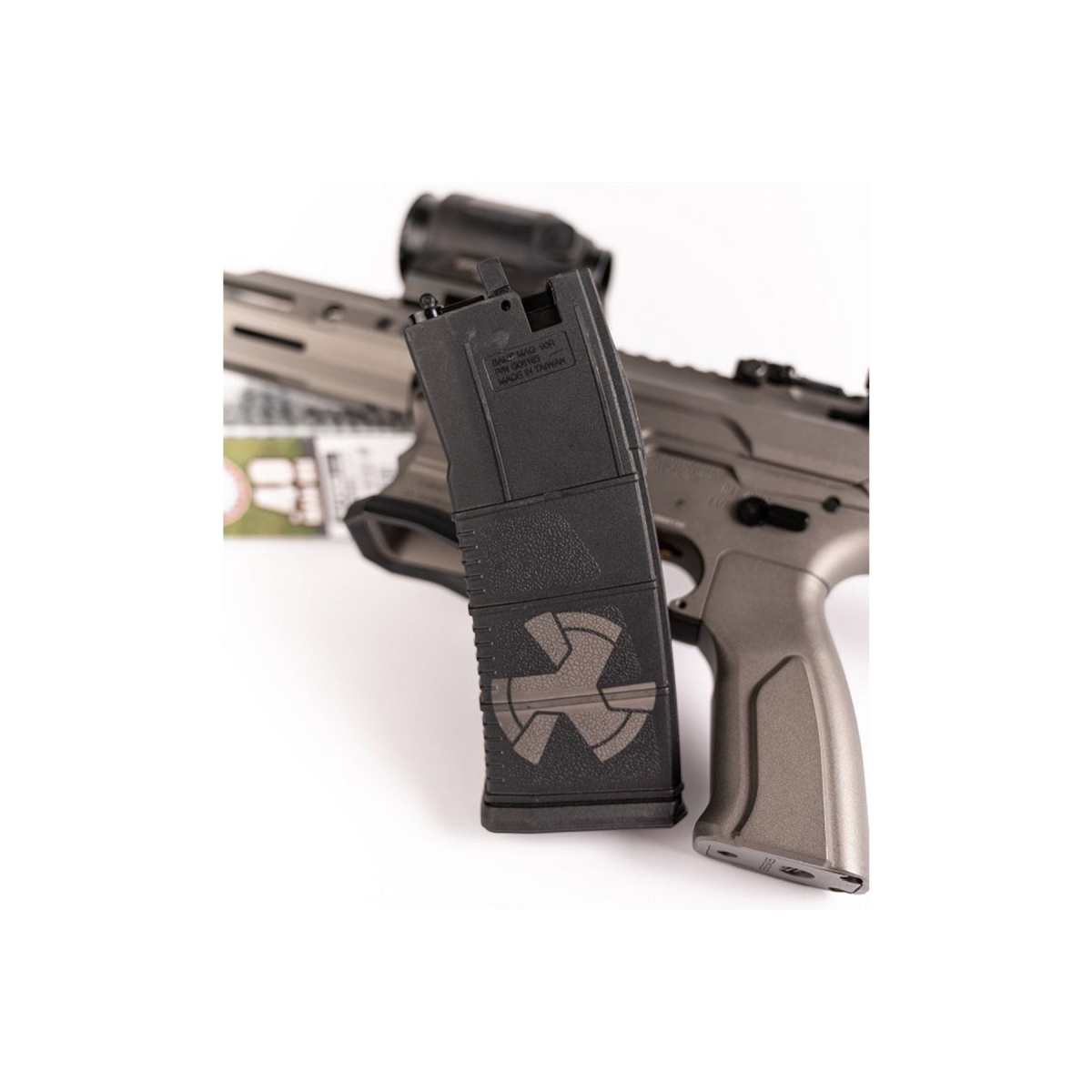 The G&G M4/M16 BAMF 90R ADAM Mid-Cap Magazine in black is a reliable, high-performance upgrade for any serious airsoft player using an M4 or M16 AEG platform. Holding 90 rounds, this mid-cap magazine strikes the perfect balance between realism and functionality, making it ideal for competitive play and milsim events. Built from high strength nylon reinforced polymer, the BAMF 90R is both lightweight and extremely durable, ensuring it can withstand the rigors of intense field use without adding unnecessary bulk to your loadout. Designed and manufactured in Taiwan, this magazine reflects G&G's dedication to quality, consistency, and performance. Equipped with a high tension steel spring, the BAMF 90R delivers smooth and reliable feeding, even during high rate-of-fire scenarios. Whether you're pushing the limits of your AEG or running a tight CQB setup, this magazine maintains performance without the misfeeds or rattling associated with high-cap mags. Its compatibility with most standard M4 and M16 AEG rifles makes it a versatile addition to any player's kit. If you're searching for a dependable mid-cap M4 magazine, lightweight AEG magazine upgrade, or G&G BAMF mag for enhanced reliability, this is a solid choice for both casual and competitive airsoft players. Add the G&G BAMF 90R ADAM Mid-Cap Magazine to your loadout today.