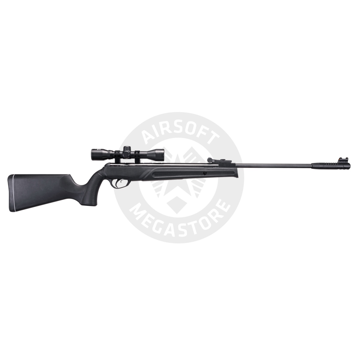 The UMAREX Prymex .22 Caliber Gas Piston Break Barrel Air Rifle in Black is a versatile choice for plinking, pest control, or small game hunting. Powered by a T.N.T gas piston, it delivers smooth, reliable shots with velocities up to 820 FPS with lead pellets and 900 FPS with alloy pellets. This .22 caliber rifle features a break barrel action, fiber optic iron sights for accuracy, and an 11mm dovetail mount for easy scope customization. Weighing 6.17 lbs and equipped with an 18.9-inch barrel, it includes a 4x32 scope for enhanced targeting, offering power and precision at an affordable price.