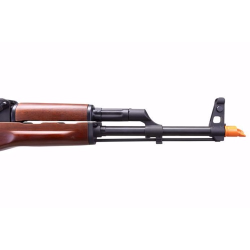 • Fixed wood stock paired with wood heat shield and handguard for classic AKM styling