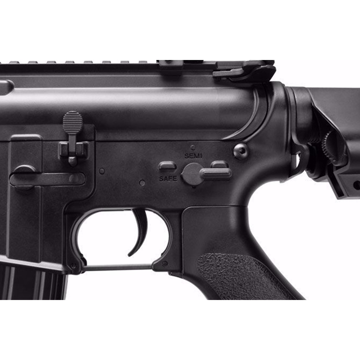 The Elite Force XM4 EyeTrace AEG Airsoft Rifle with built in tracer unit in black is a versatile electric airsoft rifle designed for players who want strong performance with added night game capability. Operating as a full electric automatic platform, this airsoft gun delivers consistent output at up to 400 FPS with 0.20g BBs and a rate of fire reaching 800 RPM. The integrated EyeTrace tracer system enhances BB visibility in low light and nighttime environments, making it easier to track shots and adjust aim during fast paced engagements. An adjustable rear stock allows players to fine tune length of pull for comfort and control, while the ergonomic pistol grip supports confident handling during extended skirmishes. Flip up front and rear iron sights provide reliable backup aiming options, and the adjustable setup makes this rifle suitable for a wide range of airsoft play styles.