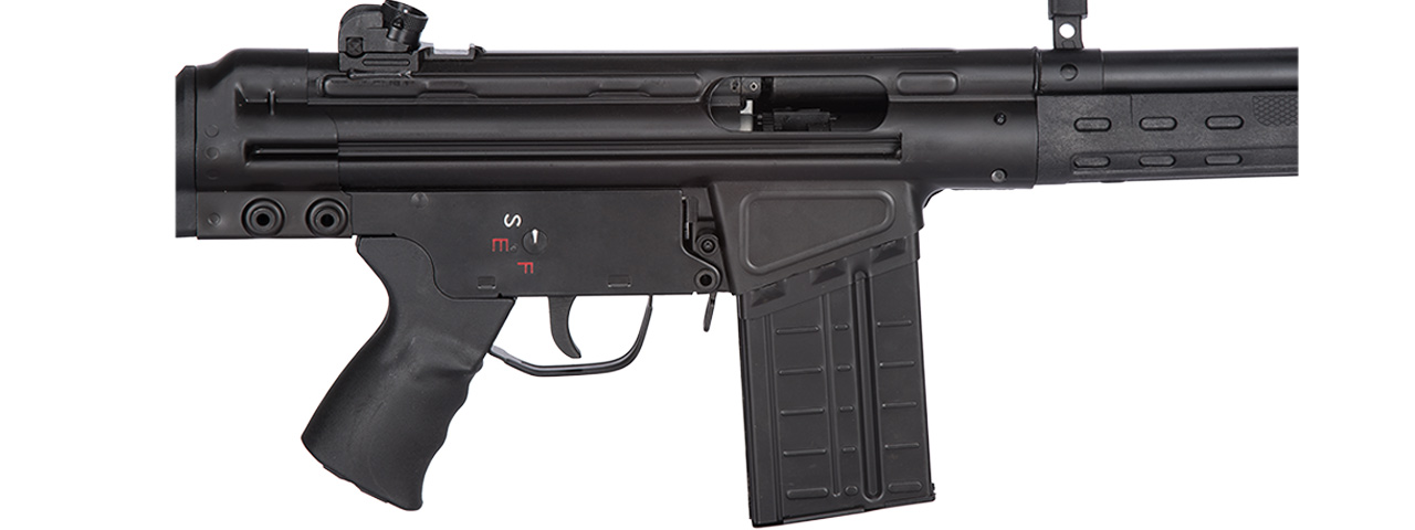 Full metal fixed front and adjustable rear sight enhances target acquisition