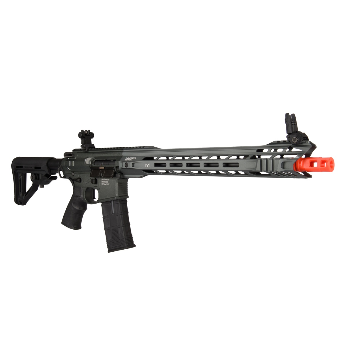 External elements are fully compatible with parts from other renowned companies- with the exception of the gearbox frame, nozzle and tappet. A standard in this replica is that all internal parts are reinforced which means it is an ideal base for any further development or turning. The replica features a MOSFET system that increases the rate or fire and as well as the trigger response time.