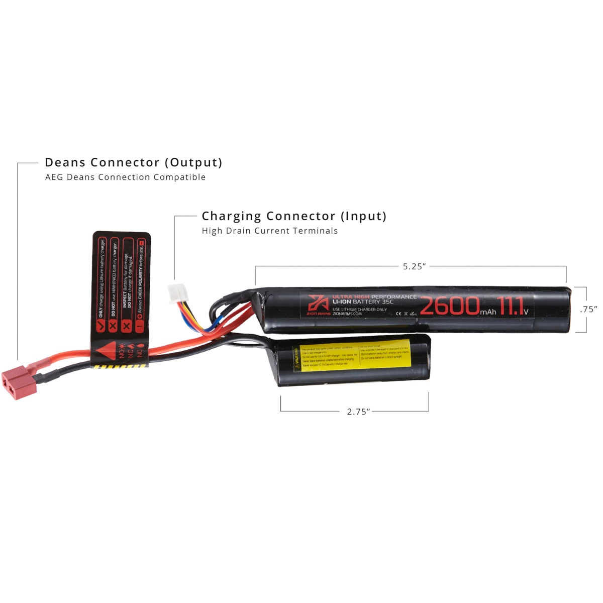 Zion Arms 11.1v 2600mAh Lithium-Ion Nunchuck Battery (Deans Connector)