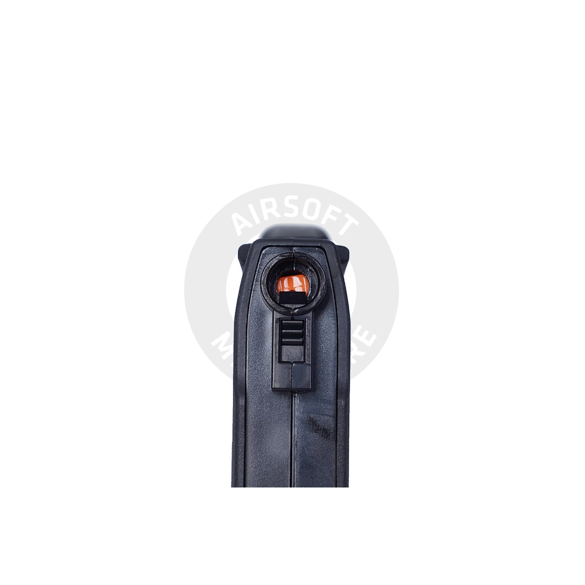 -Bright orange full load indicator: When the magazine is fully loaded, at the base of the see-through bullet window, an orange follower comes into view. This is a remarkable design feature unique to the EPM as it allows the end user to pick up any EPM magazine and immediately know if the magazine is filled to capacity and ready to go. It also acts a visual indicator for the user to known when to stop loading the magazine.