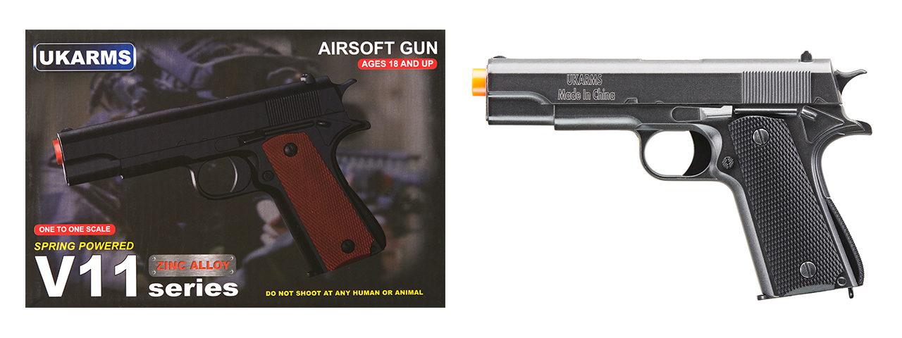 UK Arms 1911 Alloy Series Spring Airsoft Pistol (Color: Silver Gray) - Click Image to Close