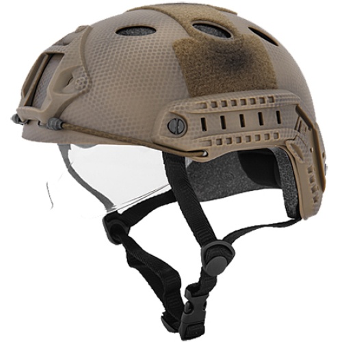 Lancer Tactical Fast PJ Type Tactical Gear Helmet - Custom DE w/Visor
