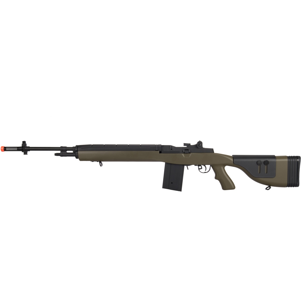 The Lancer Tactical M14 Airsoft AEG Rifle features full metal barrel and internals combined with a full polymer stock and receiver! Perfect for any field airsoft game, this rifle comes with a pre-installed M120 gearbox spring and fires at up to 350 FPS. Internally, this Lancer AEG has a reinforced Version 7 gearbox and a 500-millimeter tightbore inner barrel just like the CYMA M14 series AEGs. This AEG will be perfect for reaching out and achieving those long distance shots, especially when using heavyweight BBs.