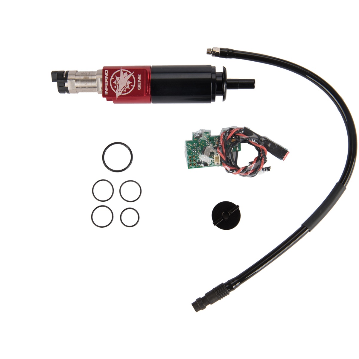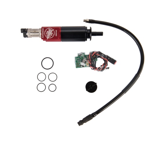 The GEN 2 Inferno is the culmination of a great deal of work to take the next step forward in the development of HPA technology. The GEN 2 Inferno features a revolutionary single solenoid, independent poppet and nozzle design that sets a new standard for a drop in kit. Particularly, it is designed to solve the “open bolt problemâ€. It is a hybrid design which keeps the advantages of an open bolt system: easy tuning, no first round dry fire, efficiency, etc… and adds the simplicity of easier hop up tuning that closed bolt systems have traditionally offered. In addition, it further improves the efficiency over our previous systems by an estimated 10-15%. The Spartan edition is for M4 version 2 gearboxes only and features a live fire tuning system. This system allows you to change the velocity as well as the rate of fire of your AEG!