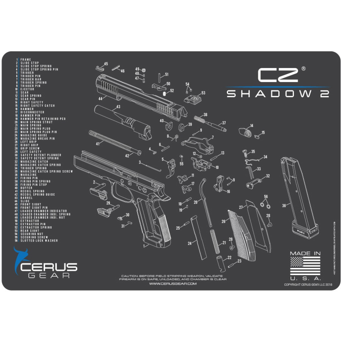 • Features a detailed schematic of the CZ Shadow 2 pistol