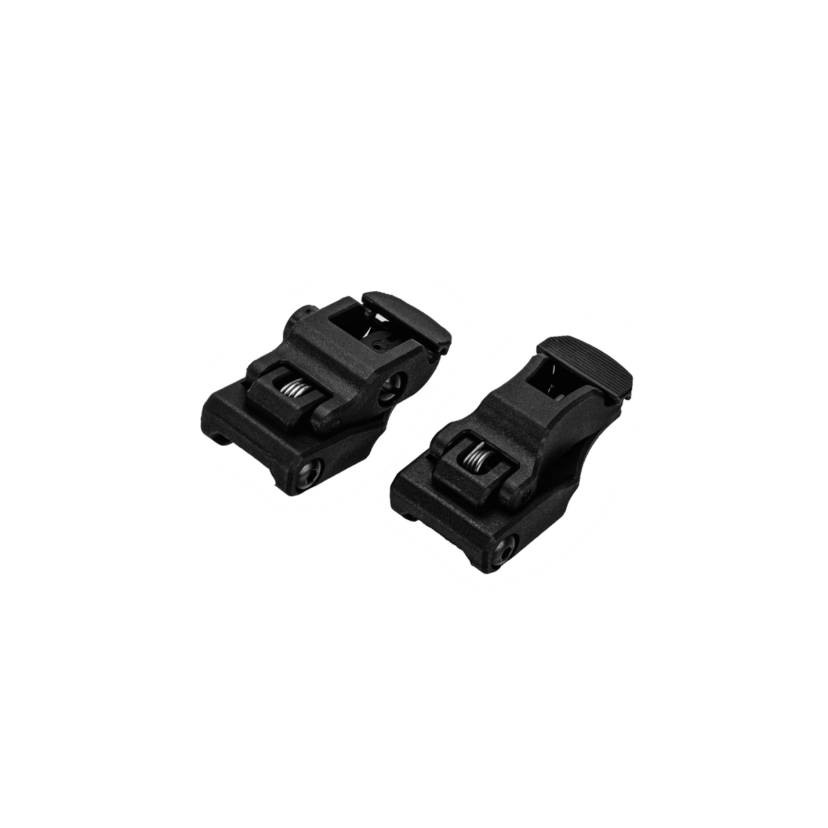 • Flip-up front and rear iron sights with a quick deploy mechanism that allows for easier target acquisition