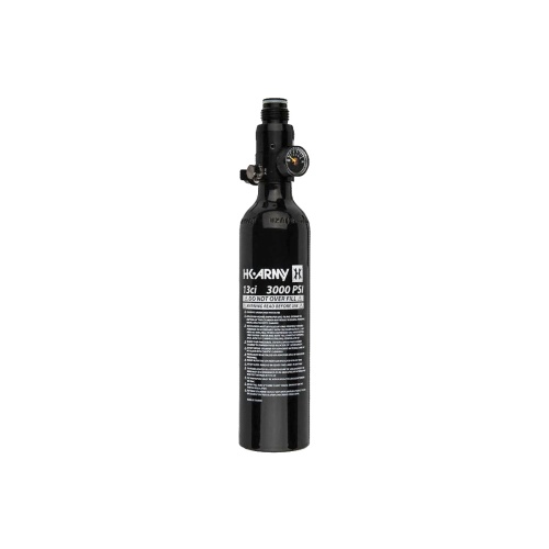 The HK ARMY HPA Aluminum Air Tank 13/3000 Aluminum Compressed Air Tank for airsoft and paintball. This is an excellent reliable high refresh rate HPA tank from HK ARMY. This is a non-SLP paintball style tank with 800 PSI output. Regulator is compact measuring 61mm from tank top base to end of threaded top. Tank is very light, compact, and easy to store. Great for small rigs, pistols, and sniper builds.