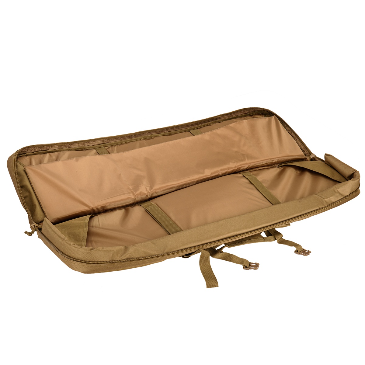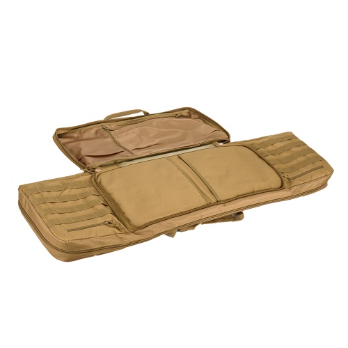 The NcSTAR 46" Double Carbine Case Gun Bag is a great way to store and transport your long rifle. The rifle compartment can hold up to two rifles and the side compartments can hold up to two pistols. It can also fit spare magazines on the side where you can put them into the MOLLE pouches. The rigid carry handle in the middle of the bag lets you grab this quickly on the go. Use the shoulder strap to carry the case if you need access to both your hands.