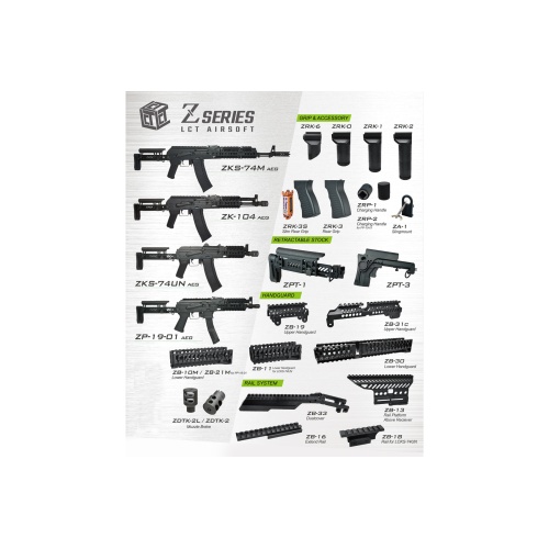 The LCT Z Series accessories are first party from LCT designed to work with LCT AK AEGs. This particular handguard is light weight yet robust and rugged. Standard picatinny rail works with all mountable accessories such as lights, lasers, foregrips, and any other 20mm picatinny attachments.