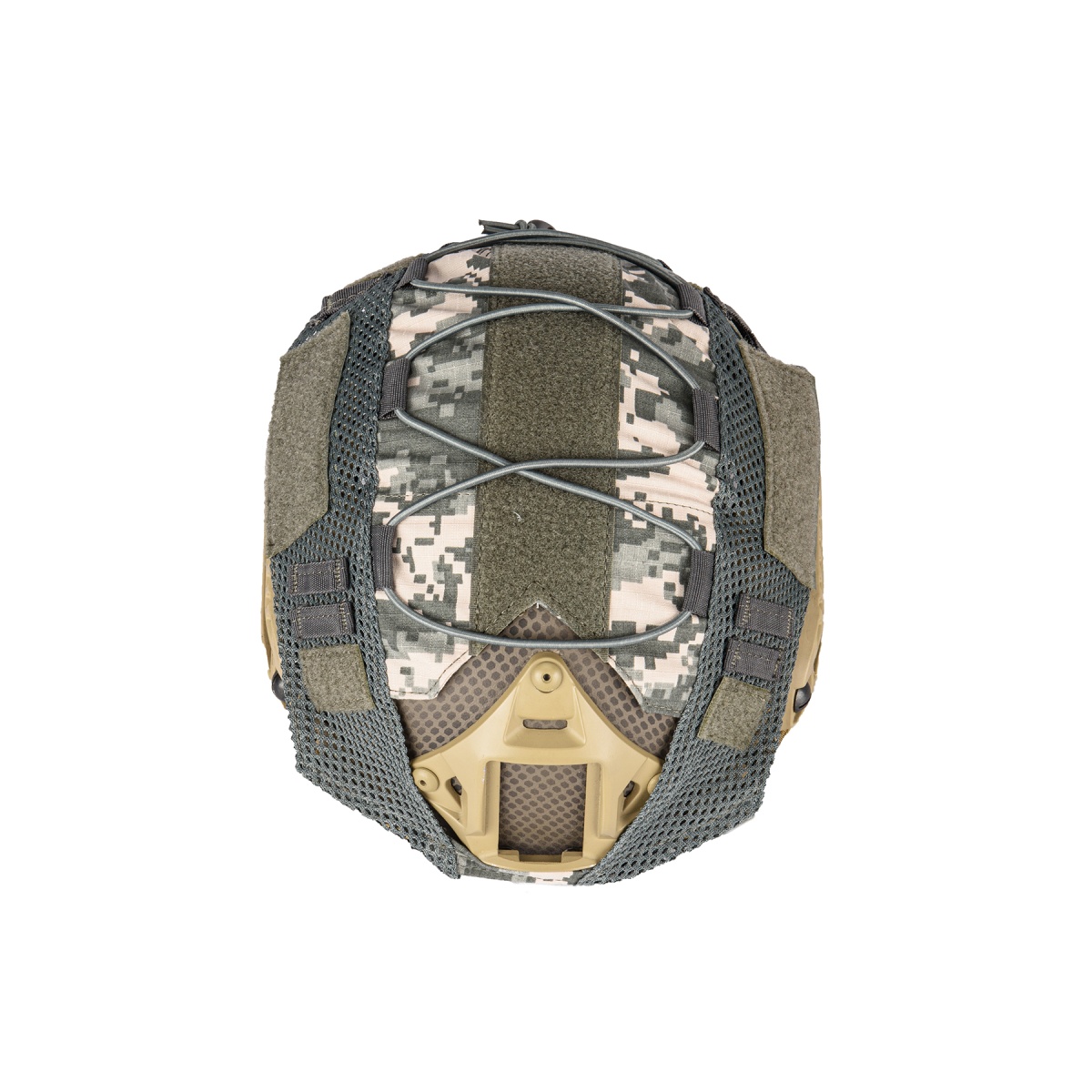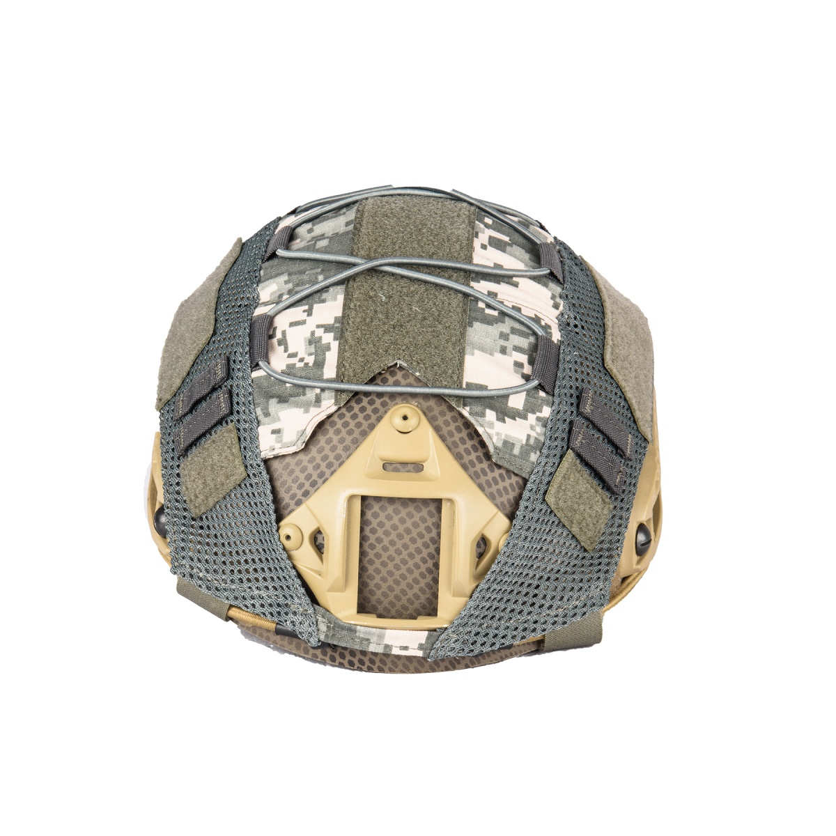 Helmet covers can easily change the color or add some camo to your helmet. The WoSport ACU helmet cover uses nylon hooks and velcro for attaching helmet accessories and patches to add more customization to your loadout.