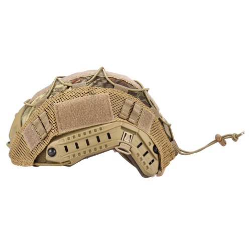 Helmet covers can easily change the color or add some camo to your helmet. The WoSport MA helmet cover uses nylon hooks and velcro for attaching helmet accessories and patches to add more customization to your loadout.