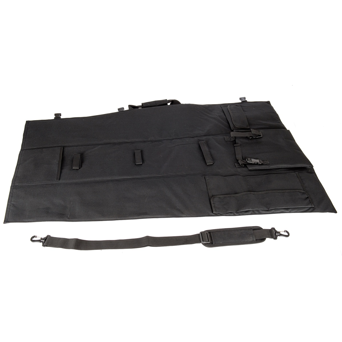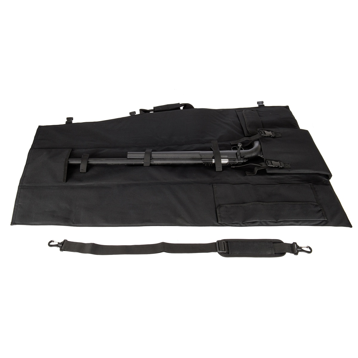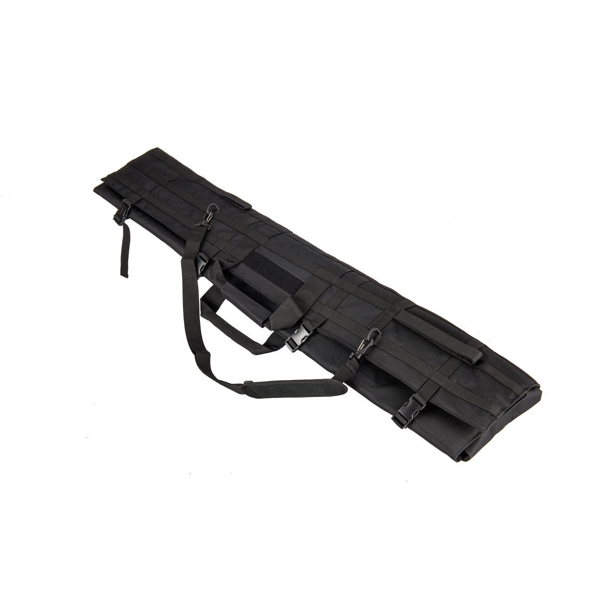 This sniper rifle gun bag is made from high quality material and is tough enough yet gentle to protect your gun while transporting. Its light weight construction makes it not feel heavy when carrying your rifle. On the inside of the gun case it has little pouches to store accessories. This airsoft rifle case comes with a shoulder carry strap for easy, comfortable transport. The 122- 128cm measurement can allow for fitting just about any length rifle that you may have.