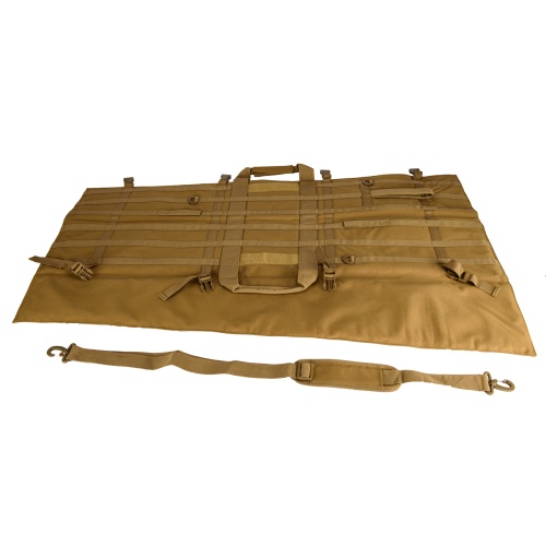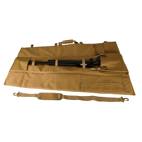 This sniper rifle gun bag is made from high quality material and is tough enough yet gentle to protect your gun while transporting. Its lightweight construction makes it not feel heavy when carrying your rifle. On the inside of the gun case it has little pouches to store accessories. This airsoft rifle case comes with a shoulder carry strap for easy, comfortable transport. The 122-128cm measurement can allow for fitting just about any length rifle that you may have.