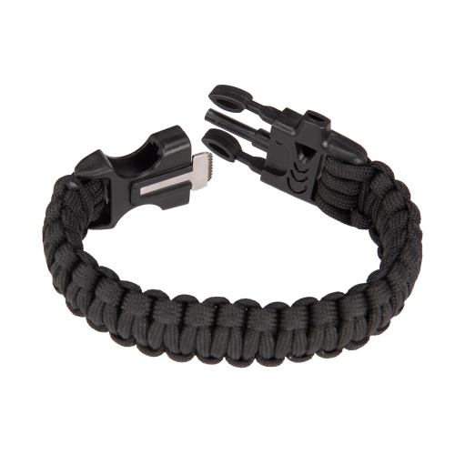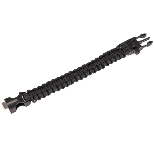 Prepare yourself for any outdoor adventure with this paracord bracelet. This bracelet features a long length paracord that can be used in emergency situations such as stringing up a tent, tying things down, and other situations. The buckle also includes a small fire striker kit for your survival needs.