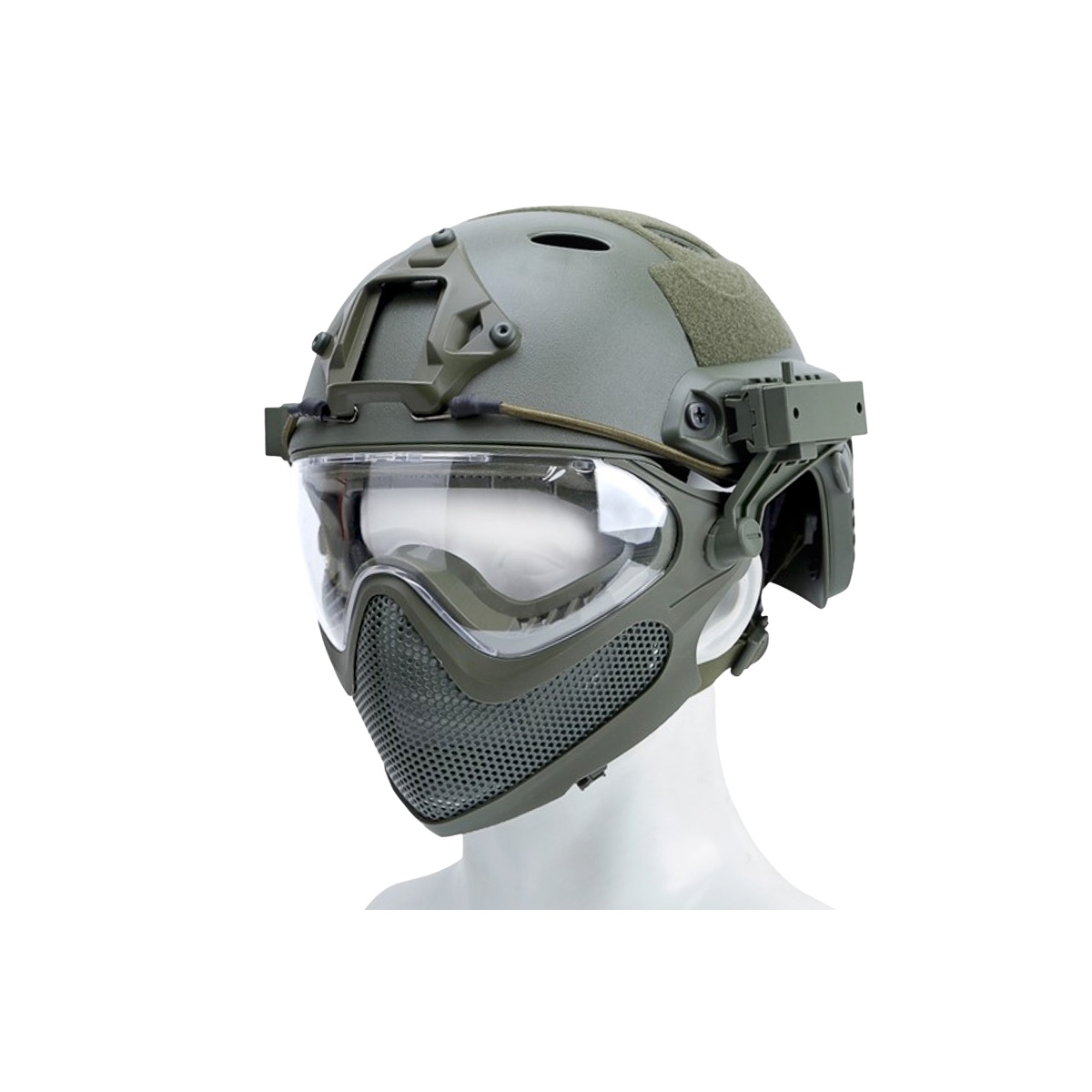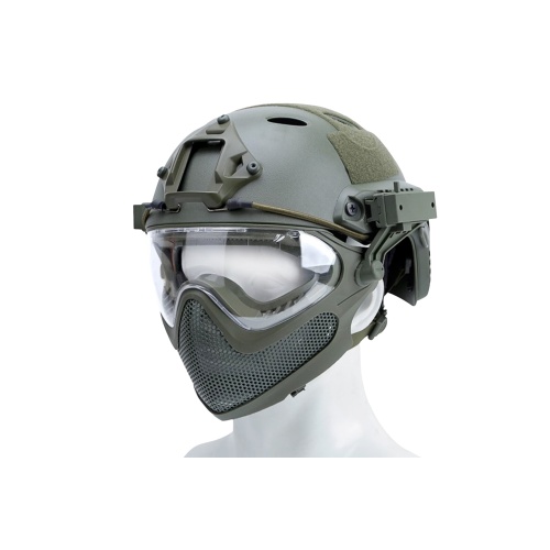 G-Force Pilot Full Face Helmet w/ Steel Mesh Face Guard (Color: OD Green)