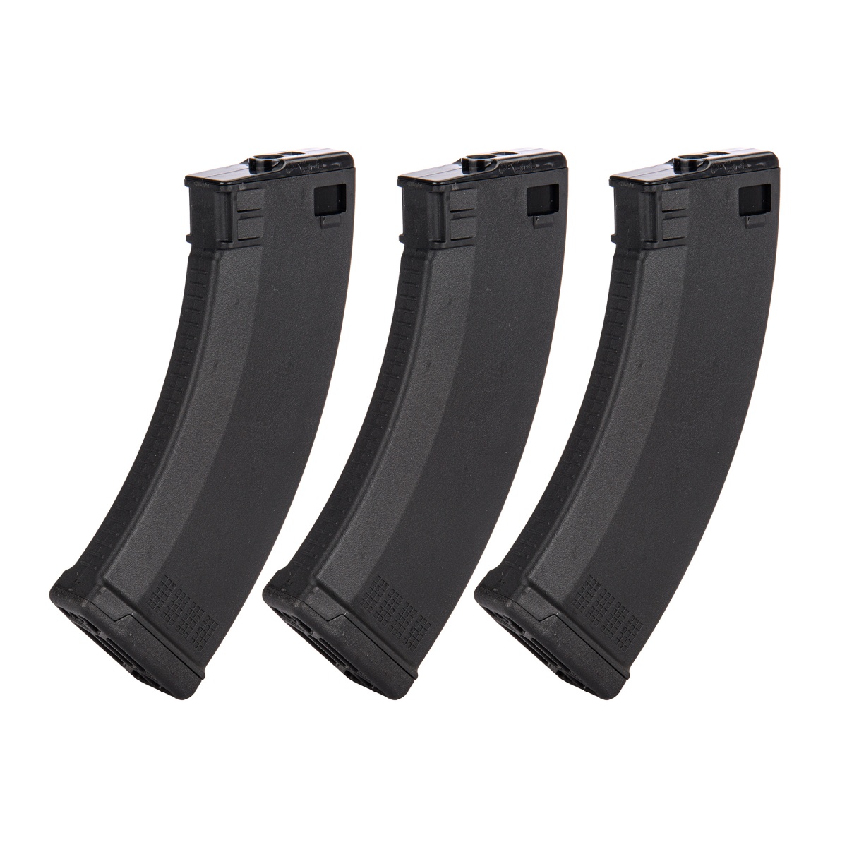 This is a pack of 3 airsoft midcap ak style magazines for the KWA Ronin 47. These magazines have a BB feeder that sticks out at the top to prevent BB drop when changing magazines.