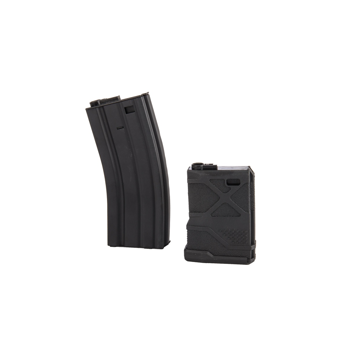 • Comes with both 120 round mid-cap metal training magazine and Alpha stock stores included 70 round short midcap magazine