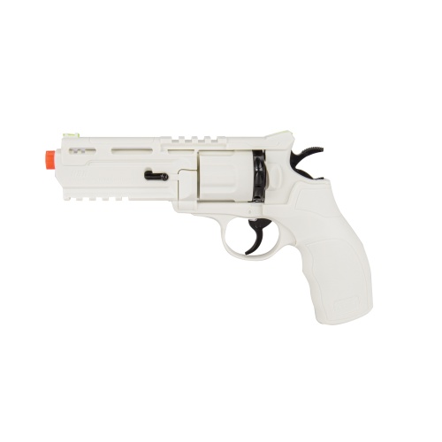 The Elite Force H8R Airsoft gun is no doubt a beast. But despite its large profile and a unique white finish, this pistol only weighs about 1.5 pounds. Offering rail estate for both dot sights and lights/lasers, this airsoft revolver is ready to hit the field as it already comes with nine 10-round magazines! The mag release, located on the left side, easily slides forward and up to unlock the magazine, allowing you to quickly swap out for a new one. Though this CO2 revolver lacks a hop-up system, it's surprisingly accurate. Tested with 0.20g BBs, rounds reach up to 325 FPS and shoot straight 20 to 30 feet before starting to drop. This makes it perfect for close quarters battle. As a nice finishing touch, reloads are made even easier as the break away pistol grip comes with an integrated hex key for piercing the fresh new 12g CO2 cartridge. If you're looking for a reliable CO2 airsoft pistol already equipped with extra mags, the Elite Force H8R airsoft revolver is any easy pick for its price.