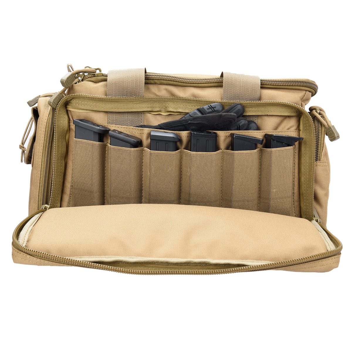 • Main compartment can hold at least 5 pistols, ear protection head sets, eye protection and other gear