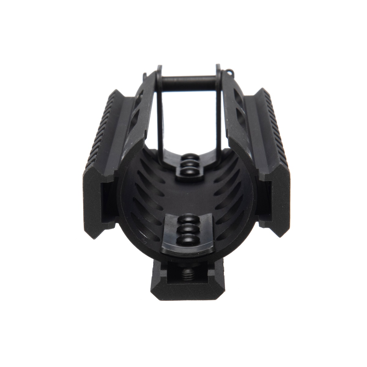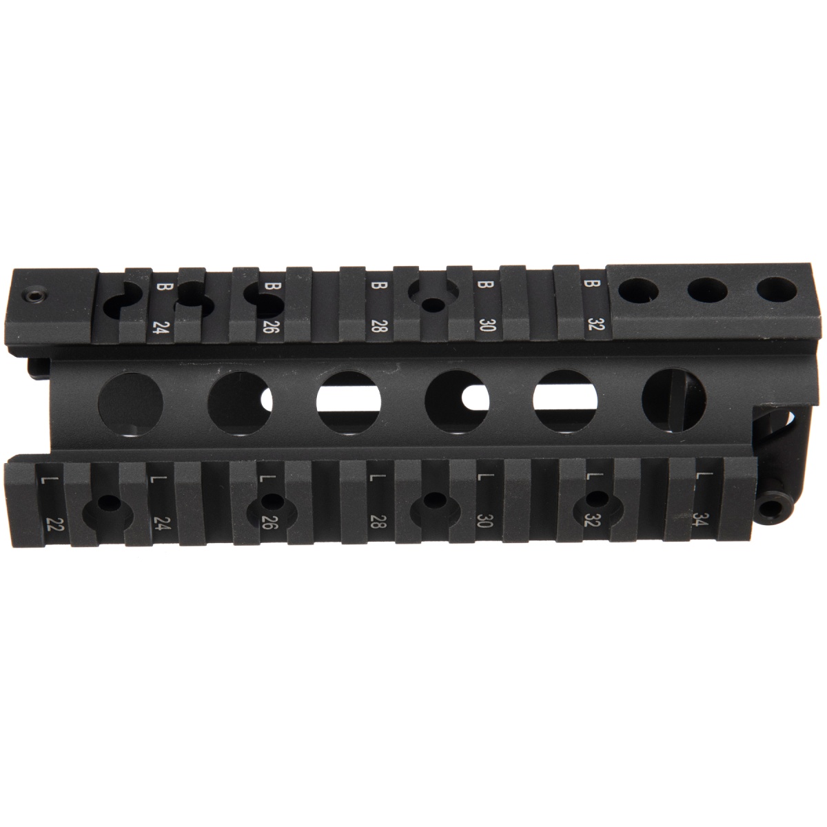 • The rail system replaces the original handguard and allows for the attaching of flashlights, grips, lasers, and other tactical accessories