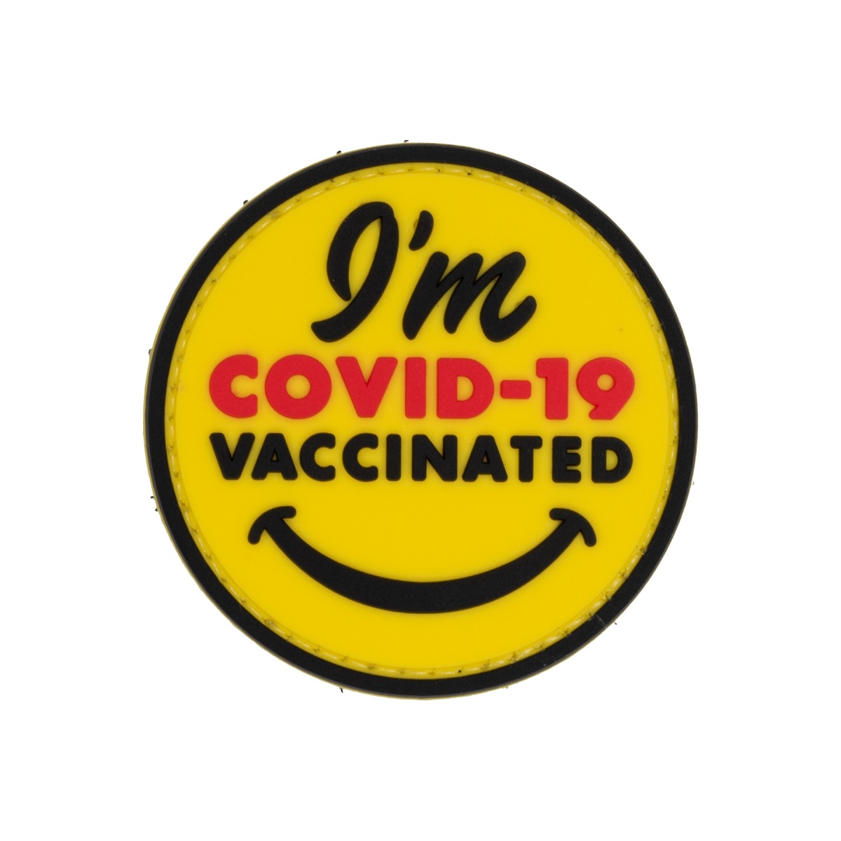 "I'm Covid-19 Vaccinated" Smiley PVC Patch (Color: Yellow)