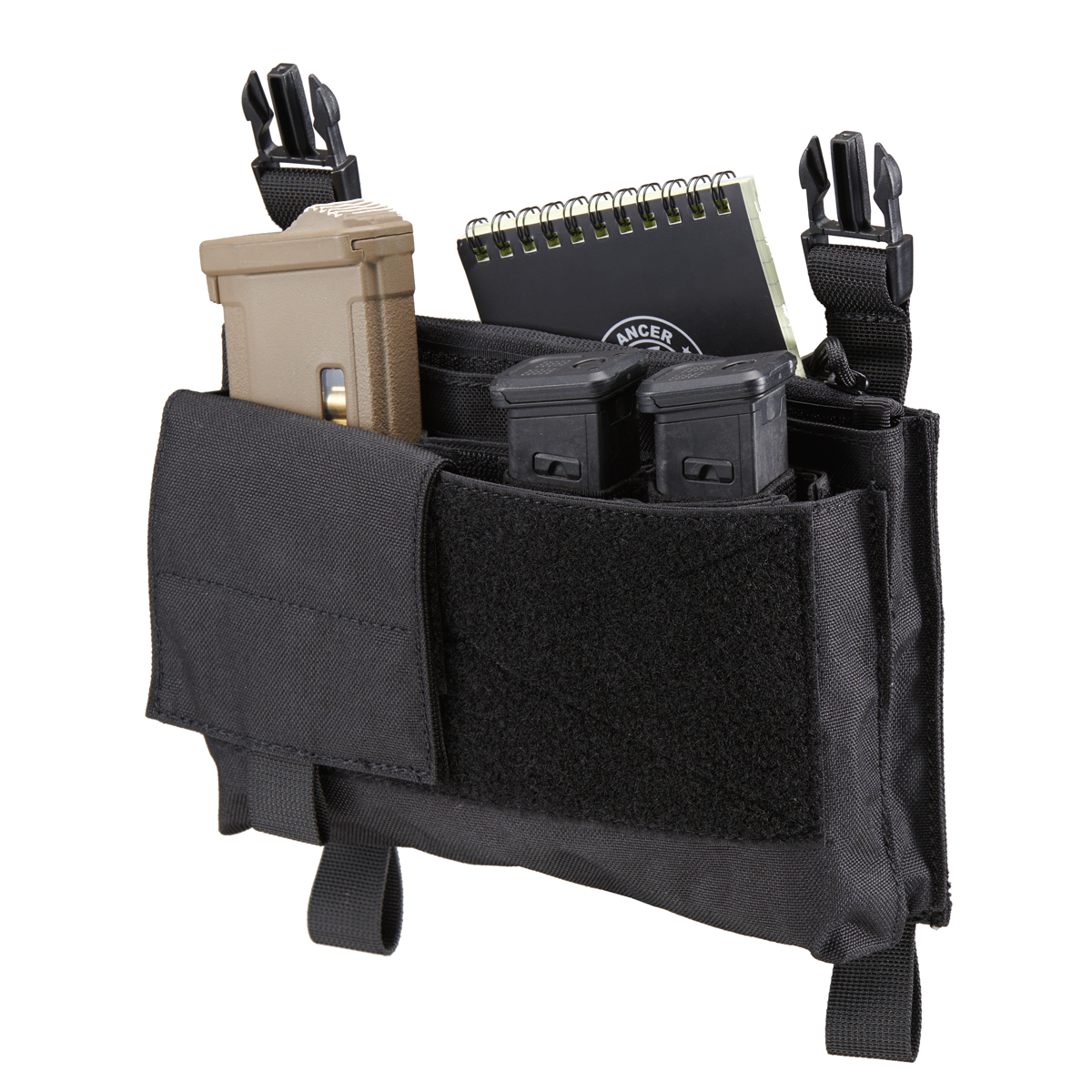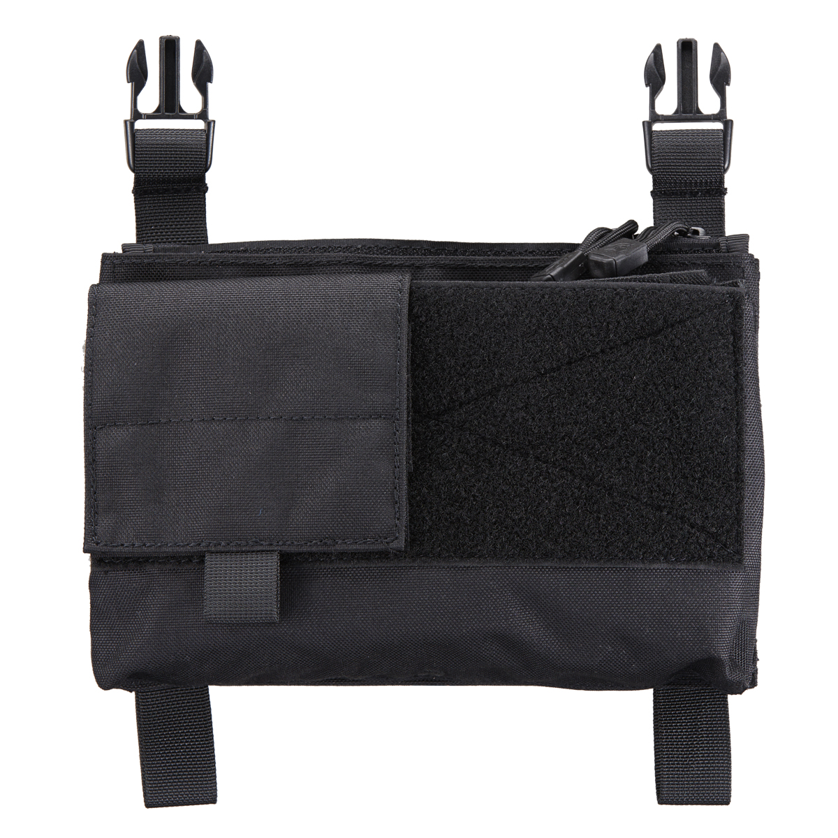This modular chest panel can be used in conjunction with traditional tactical vests or on a modular chest rig