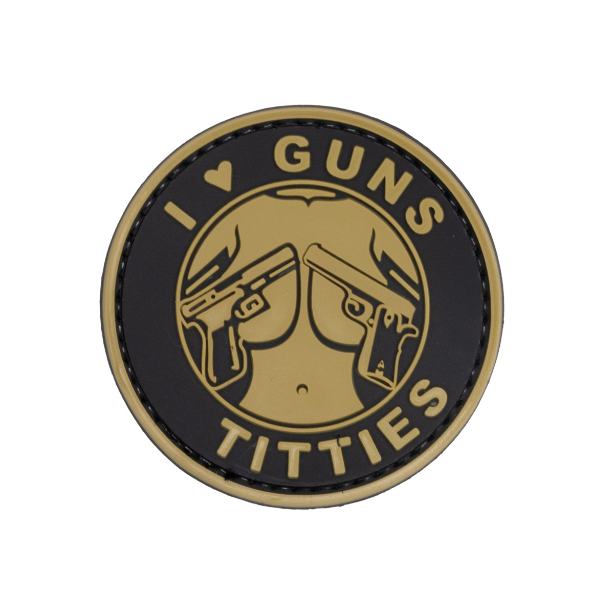 I Heart Guns & Titties PVC Patch (Color: Tan)