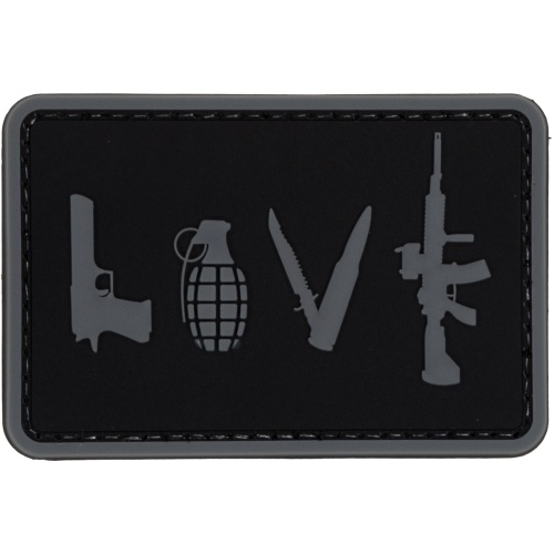 Love-Pistol, Grenade, Knife, Rifle" PVC Patch (Color: Black)