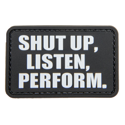 "Shut Up, Listen, Perform" PVC Patch (Color: Black)