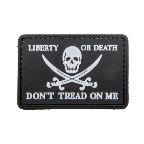 Pirate Skull Liberty or Death, Don't Tread On Me PVC Patch (Color: Black)