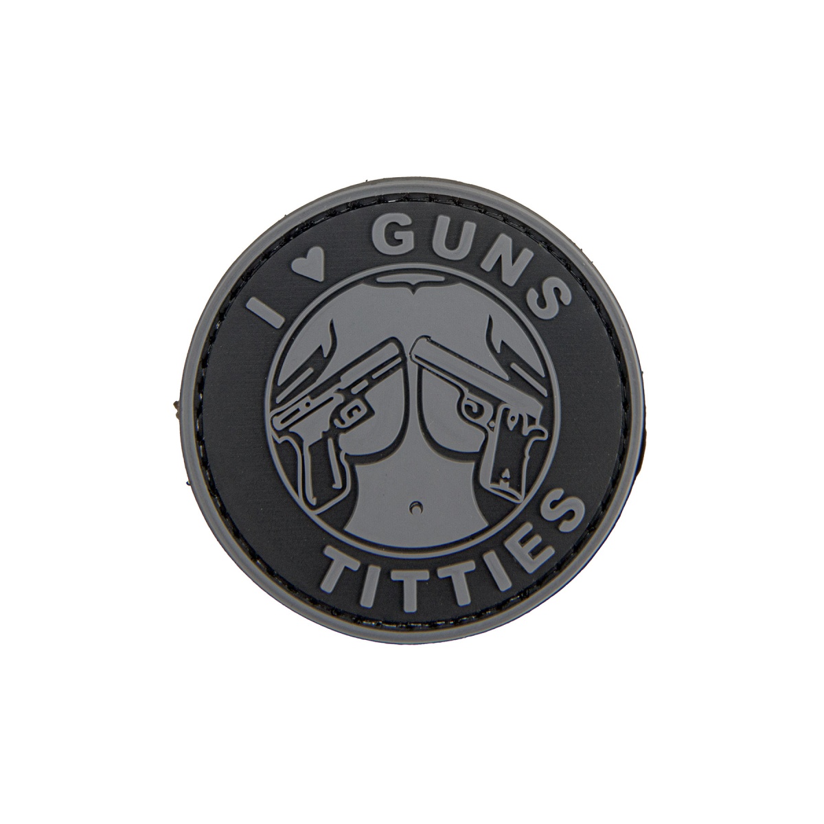 I Heart Guns & Titties PVC Patch (Color: Gray)
