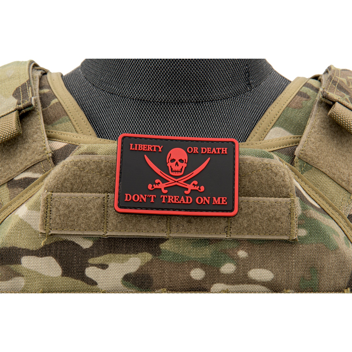 Pirate Skull Liberty or Death, Don't Tread On Me PVC Patch (Color: Red)