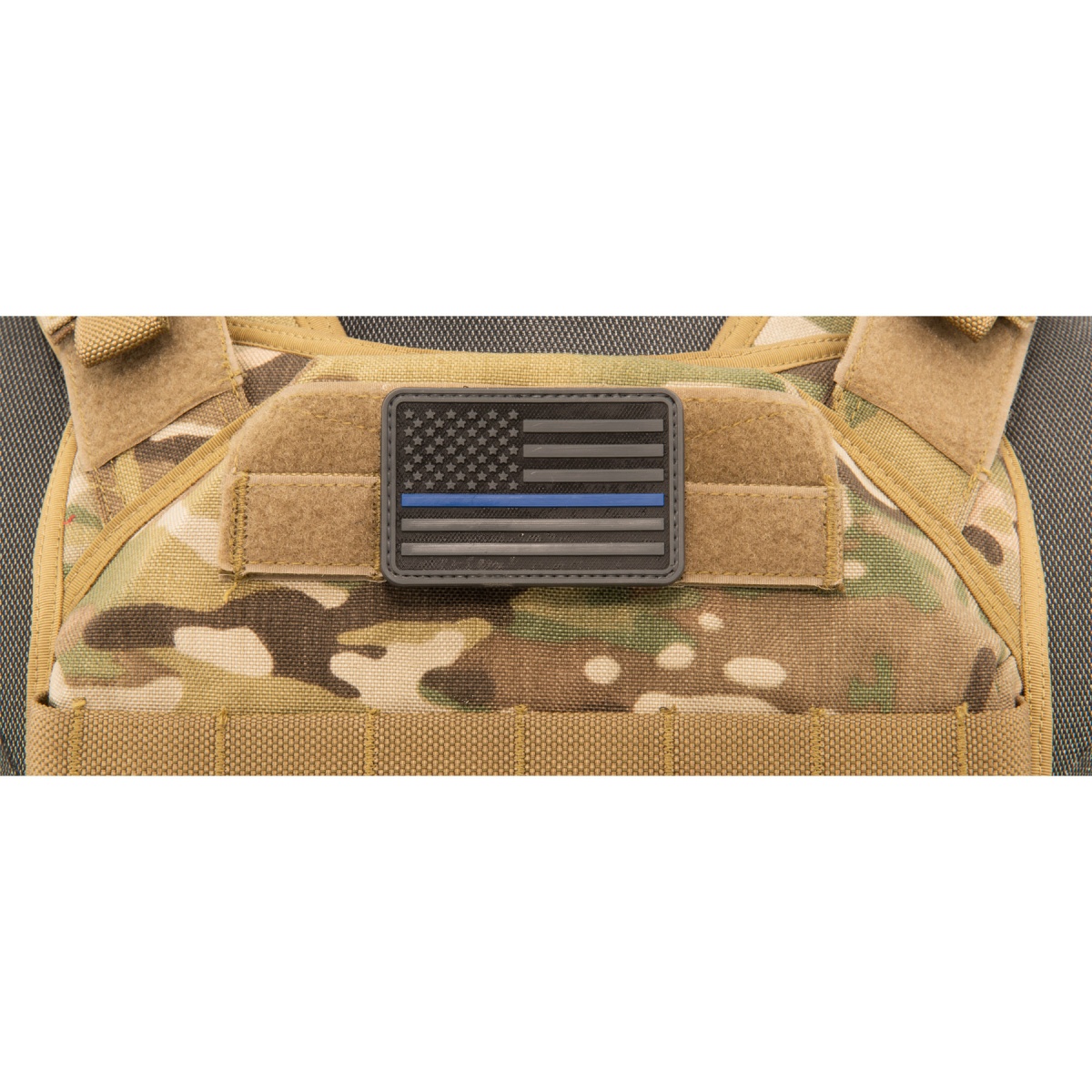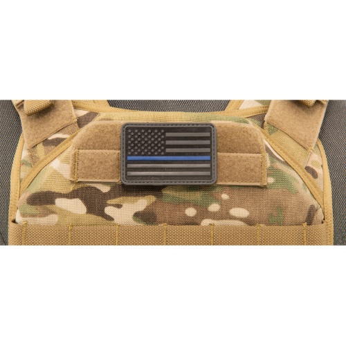 3D US Flag Forward PVC Patch w/ Blue Stripe (Color: Black)