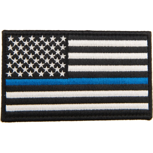 Embroidered Forward US Flag Patch w/ Blue Line (Color: Black)
