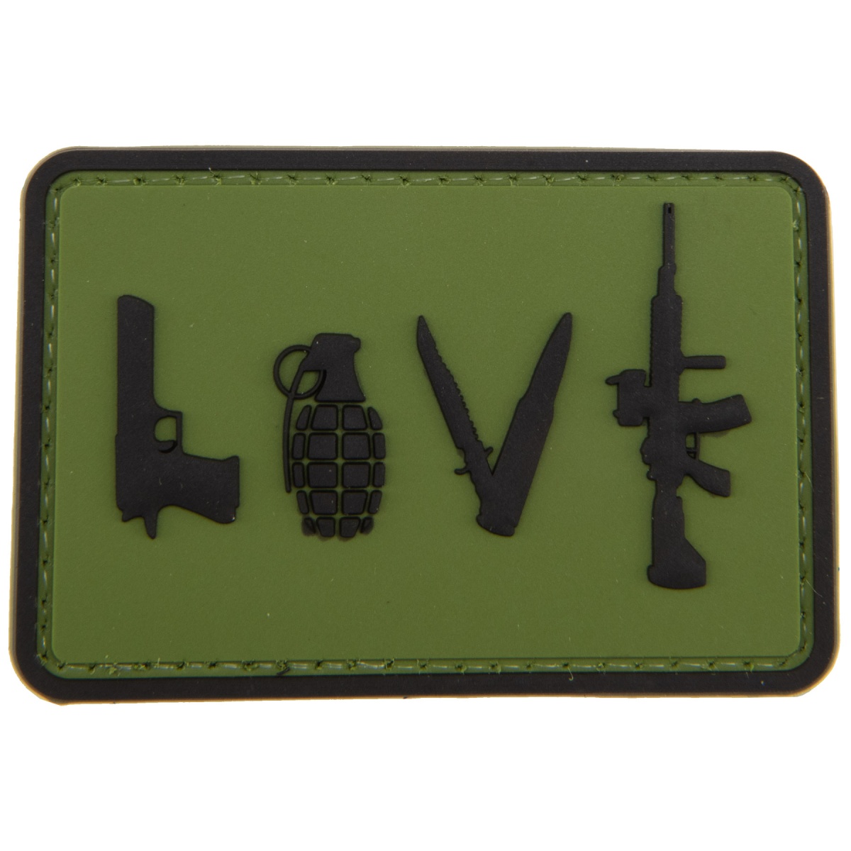 Love-Pistol, Grenade, Knife, Rifle" PVC Patch (Color: OD Green)