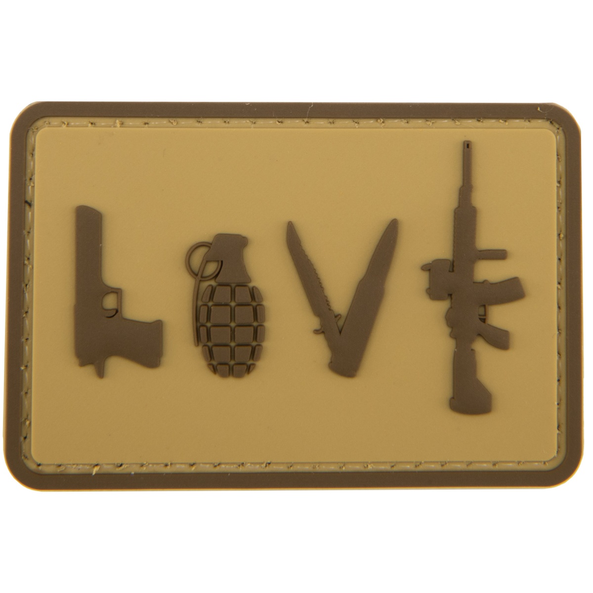 Love-Pistol, Grenade, Knife, Rifle" PVC Patch (Color: Coyote Tan)